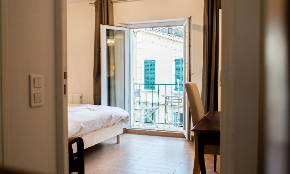 - Ruime tweepersoons slaapkamer met balkonnetje gericht op het Chateau de la Castre